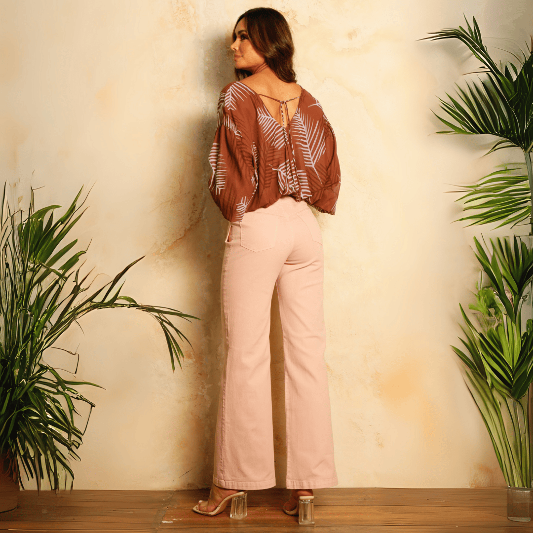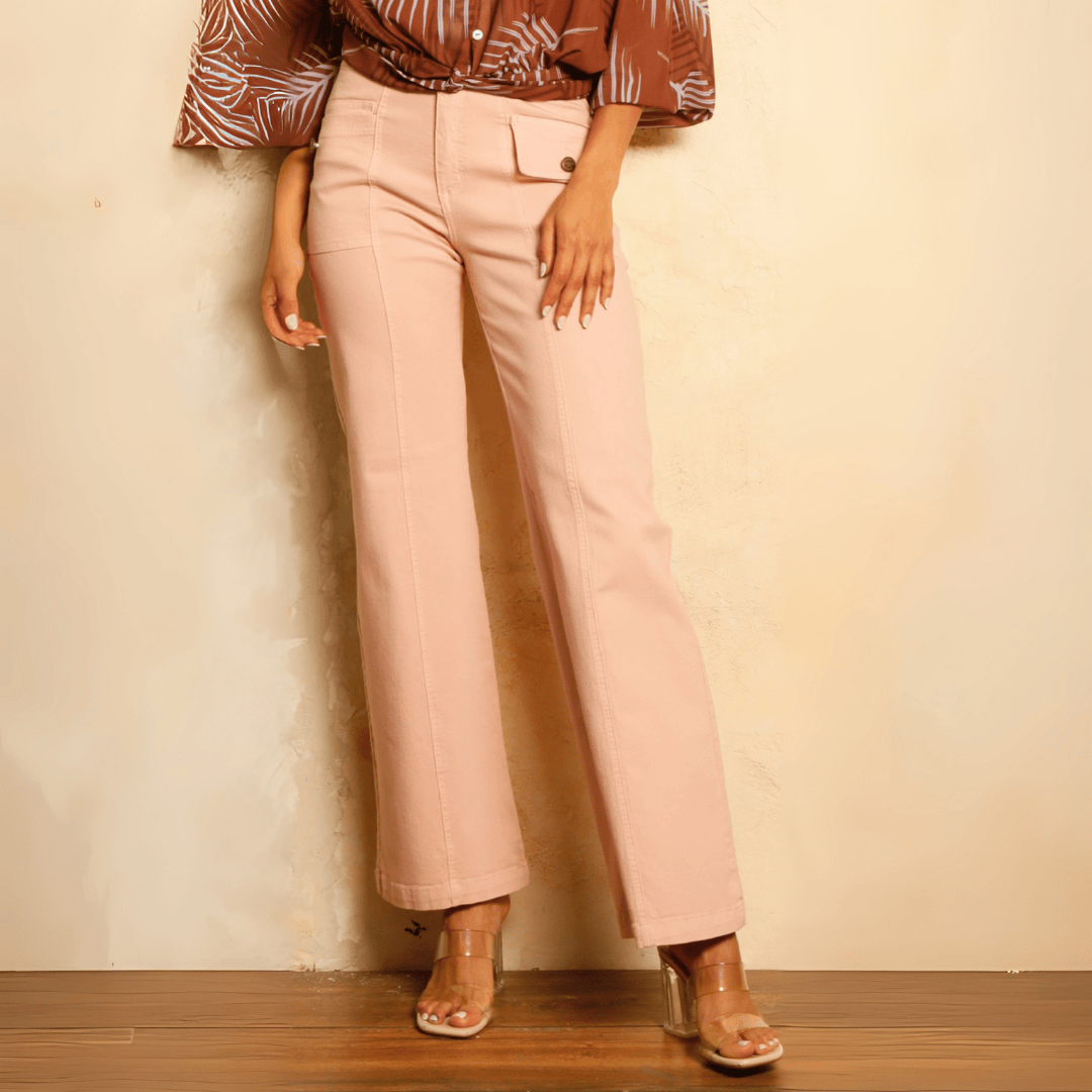Una silueta que narra estilo con cada costura. El pantalón Literario fusiona lo clásico con un toque utilitario gracias a su bolsillo lateral con botón. En tono rosa empolvado, evoca suavidad y sofisticación, ideal para estilismos versátiles que transitan entre lo relajado y lo pulido.